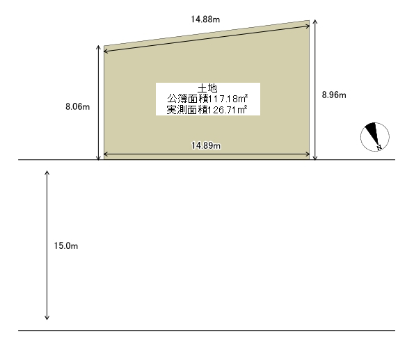 建築条件なし、実測面積126.71u、公営水道、公共本下水、都市ガス、私道負担無し、前面道路:美章園街道、現状有姿取引