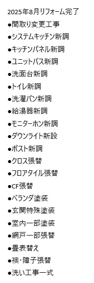 駐車場、公営水道、公共本下水、都市ガス、現況優先、建ぺい率・容積率超過、改装済み(2025年8月完了)、司法書士指定