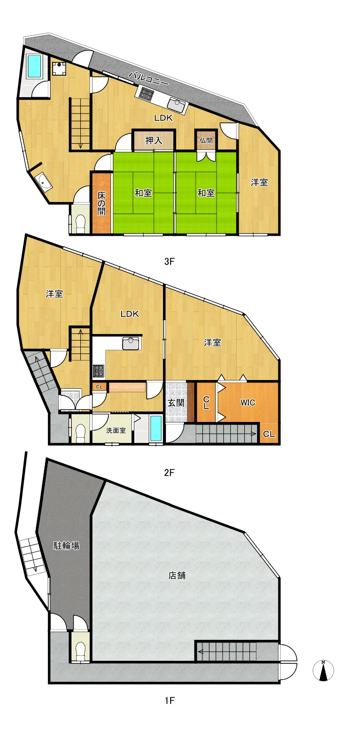 オーナーチェンジ、建物面積詳細1F:89.35u2F:89.35u3F:73.57u、公簿取引、現状有姿渡し、契約不適合責任(付帯設備)不負い、売主の境界確定義務不負い、売主の残置物撤去義務不負い、建物1階店舗の賃借人に対して貸主としての権利義務の一切を引き継ぐものとする、居酒屋:2016年契約・月額賃料160,000円(消費税含む)・預り金5,300,000円・内解約時に金3,710,000円を借主に返還必要・返還義務は新貸主負担、1階西側月極駐輪場:1台2,200円/月(2025年12月現在22台が契約中)・月額収入48,400円、引渡し時(所有者移転時)に本件不動産内に残置される動産類(1階の賃借人に所有権が属するもの及び駐輪場内の自転車を除く)の撤去義務を売主は一切負いません、2階・3階部分は所有者の居宅として利用中 |