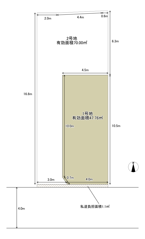 | 土地面積 | 47.76m2 ( 14.44坪 ) | 私道面積 | 1.1m2 | ||