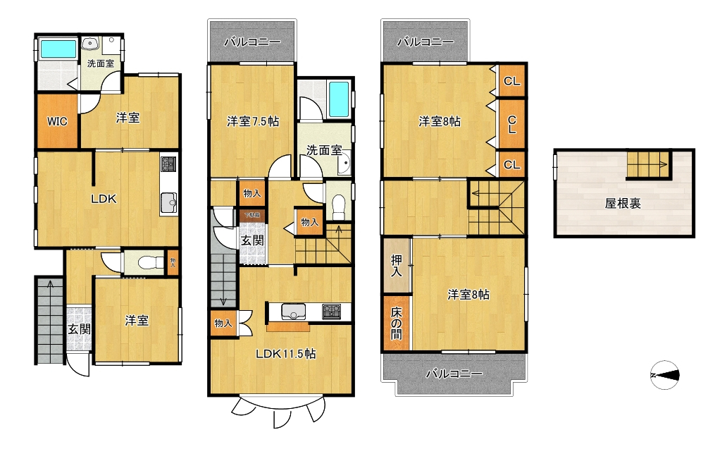 2LDK+フリースペース 木造・鉄筋コンクリート造 |