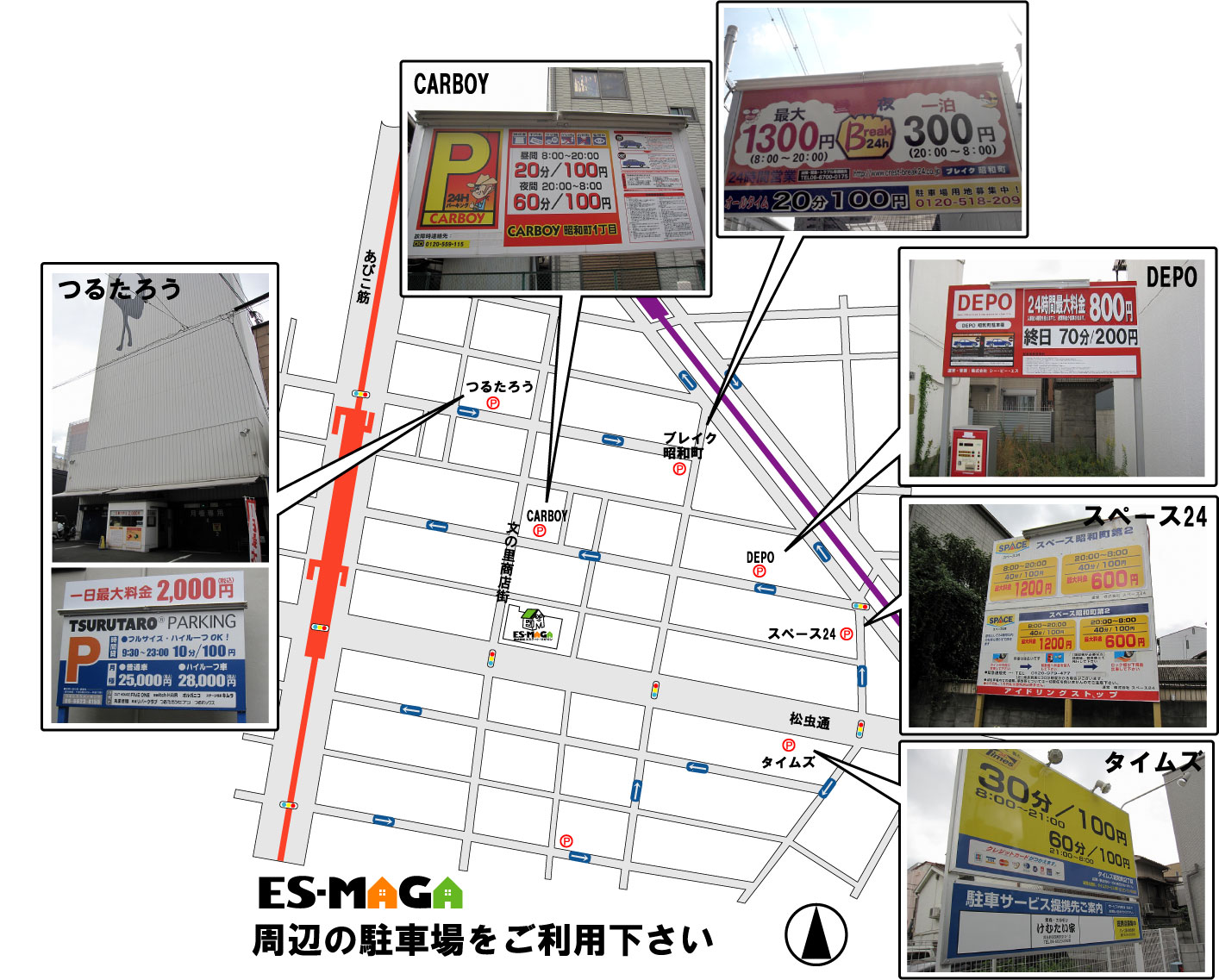 お車でお越しの際は近隣駐車場をご利用下さい。